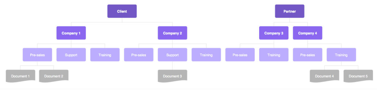 The best way to prove that tags are superior to folders is probably an example. Let's suppose that we work with different Companies, some of which are Clients, while some are Partners (for simplicity, let's assume that a client cannot be also a partner). With Clients, we can have documents relative to three activities: Pre-sales, Training, and Support. With Partners, we can only have documents related to Pre-sales and Training.